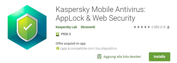 Kaspersky è un altro popolare produttore di software antivirus per PC, ed è naturale che abbia anche un’offerta Android. Può eseguire scansioni estese sul dispositivo per verificare la presenza di virus e trojan. Hai anche accesso a un filtro web che ti avvisa quando stai visitando un sito che rappresenta un rischio per gli utenti. Puoi anche bloccare i chiamanti, proteggere con password le tue app e nascondere informazioni finanziarie riservate lontano da occhi indiscreti mentre acquisti online.