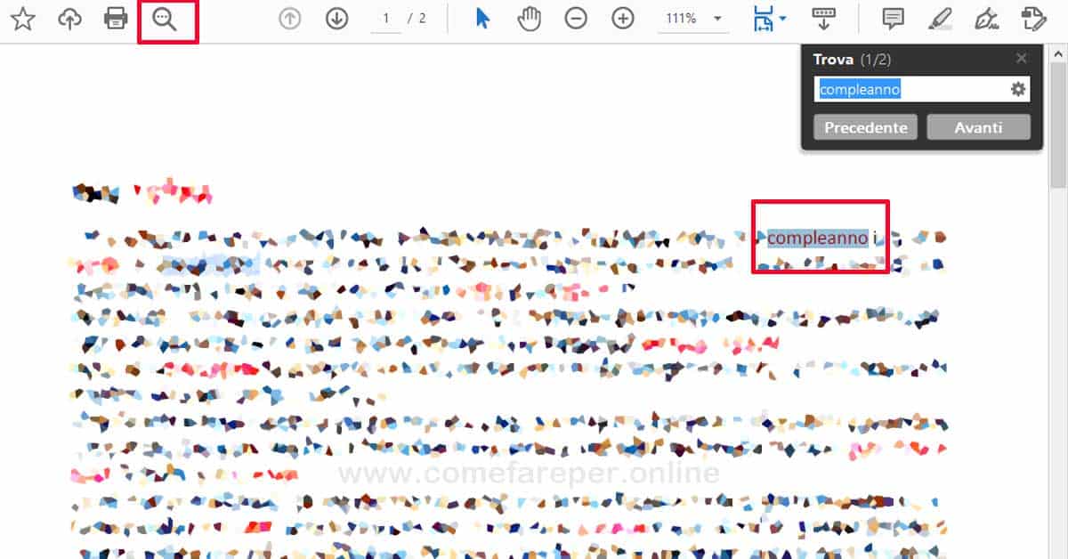 Come abbiamo detto sopra, trovare una determinata parola o frase in un PDF è semplice e veloce, e la puoi cercare direttamente usando gli strumenti messe a disposizioni dai più comuni lettori di PDF. Qui vedremo come farlo su Windows e macOS.